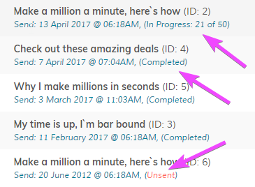 Send counts are auto updated every 20 seconds and will disappear automatically if completed.
